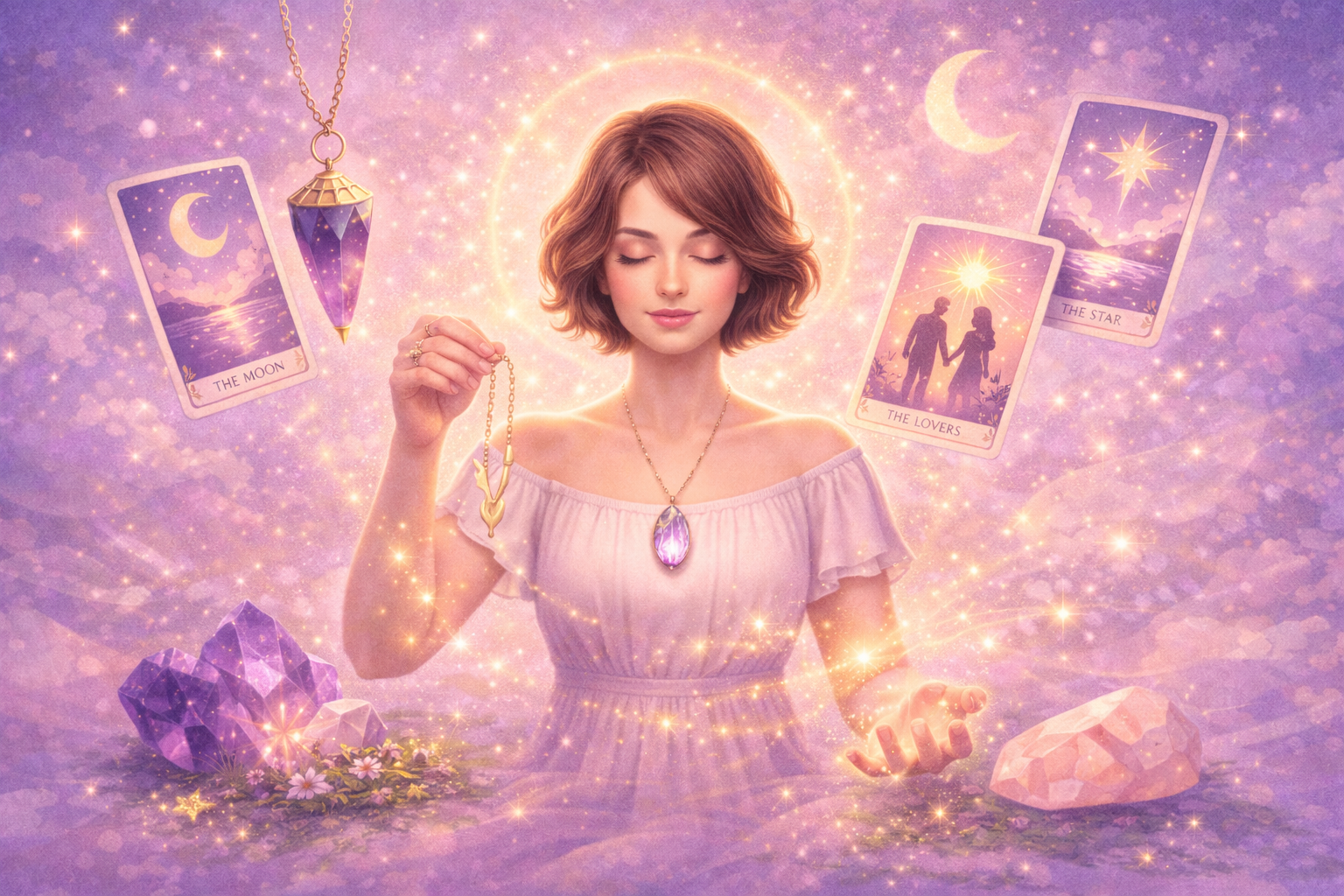 Plus tard, une rencontre avec Edmond m'a initiée à l'art de tirer les cartes, éveillant en moi une curiosité profonde pour cet univers. Au fil des années, mes dons se sont affinés par l'expérimentation du pendule, de la lithothérapie et des canalisations de messages. Malgré une timidité initiale, les retours positifs de mes proches, pour qui les prédictions se révélaient justes, m'ont poussée à écouter mon intuition et à assumer ma connexion grandissante avec le monde spirituel.